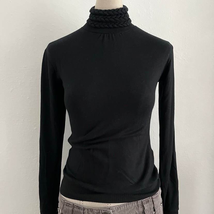 Goth Siyah Yüksek Yakalı Triko Kazak