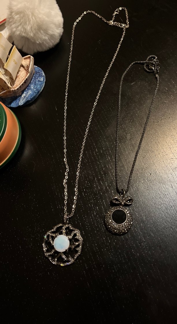 Goth tarzı, zincir detaylı ve koyu gri nakışlı kolye. Günlük kullanım için normal uzunlukta, bohem ve retro havası taşıyor.