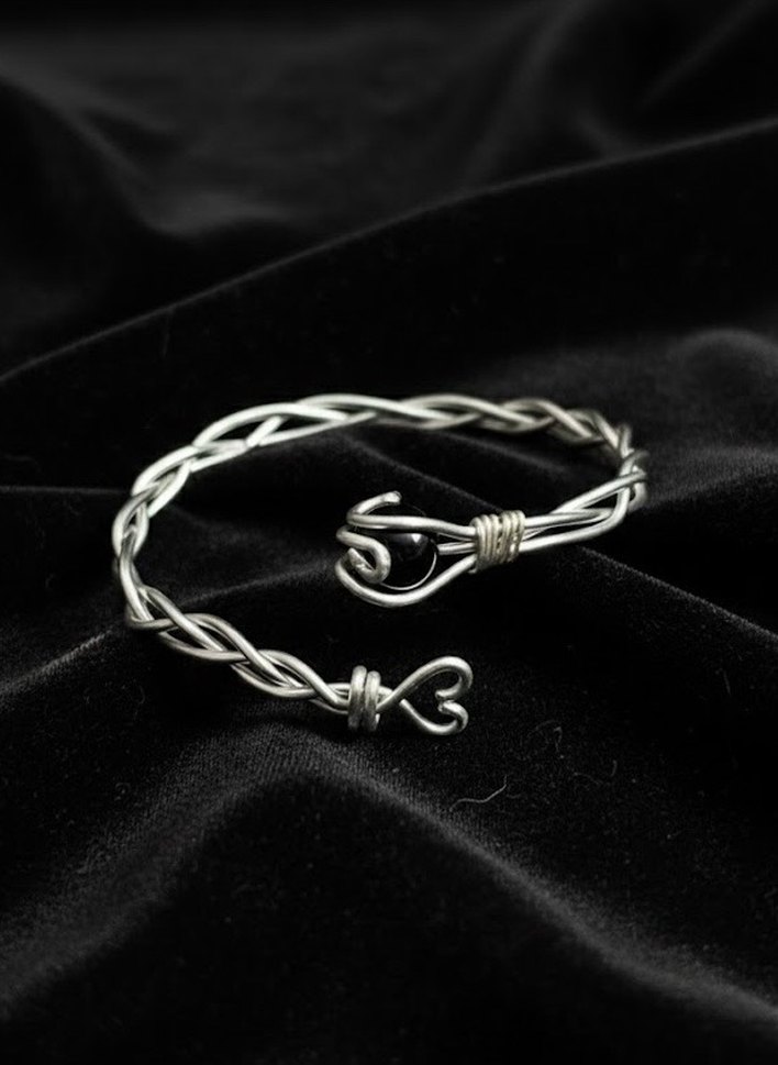 Goth tarzında zincir detaylı, bükümlü tasarıma sahip siyah kadın bilekliği, günlük kullanım için uygundur.