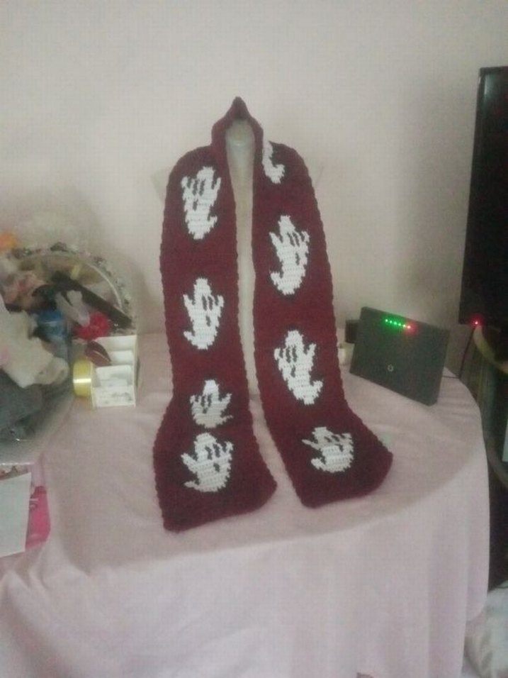Boy 220 cm, en 18 cm. Kendi tasarım ve el emegimdir. Bordo üzerine zıt yönlerde giden beyaz hayalet temalı triko kalın kışlık atkı. Yeni ördüm. Gothic grunge punk rock emo y2k streetwear bohem vampire witchy dark Coquette comic Geek tarzlara uygundur
