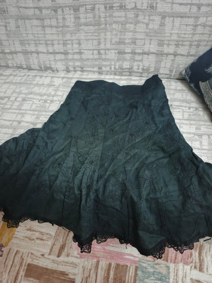 zayıfladıgım icin artık bana olmuyor bir veya iki kere giydim Nakışlı desenlere ve fırfır detaylara sahip uzun siyah keten etek, bol kesimi ve gotik tarzıyla dış mekan kullanımına uygundur gotik grunge y2k siyah midi bohem