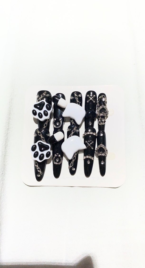 Gothic kedili nail art takma tırnak