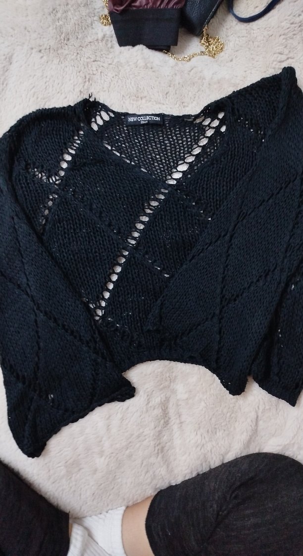 Uzun kollu,v yaka siyah örgü kadın kazak. Gevşek kesim ve midi boyda, rahat ve gotik tarzda herhangi bir sorunu yok