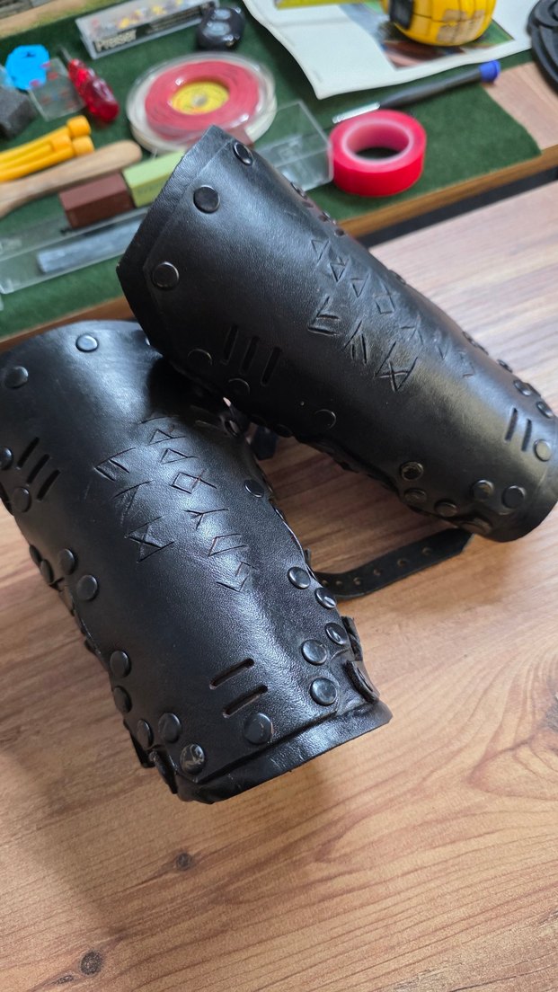 Gothic viking norse siyah gerçek deri bileklik kolcak.bileklik özel tasarlanıp dana derisinden yapılmıştır.viking rune ları eklenip siyah boyanmıştır.ölçü uzunluk 18,5 cm dir. Genişlik 20,5 cm dir.