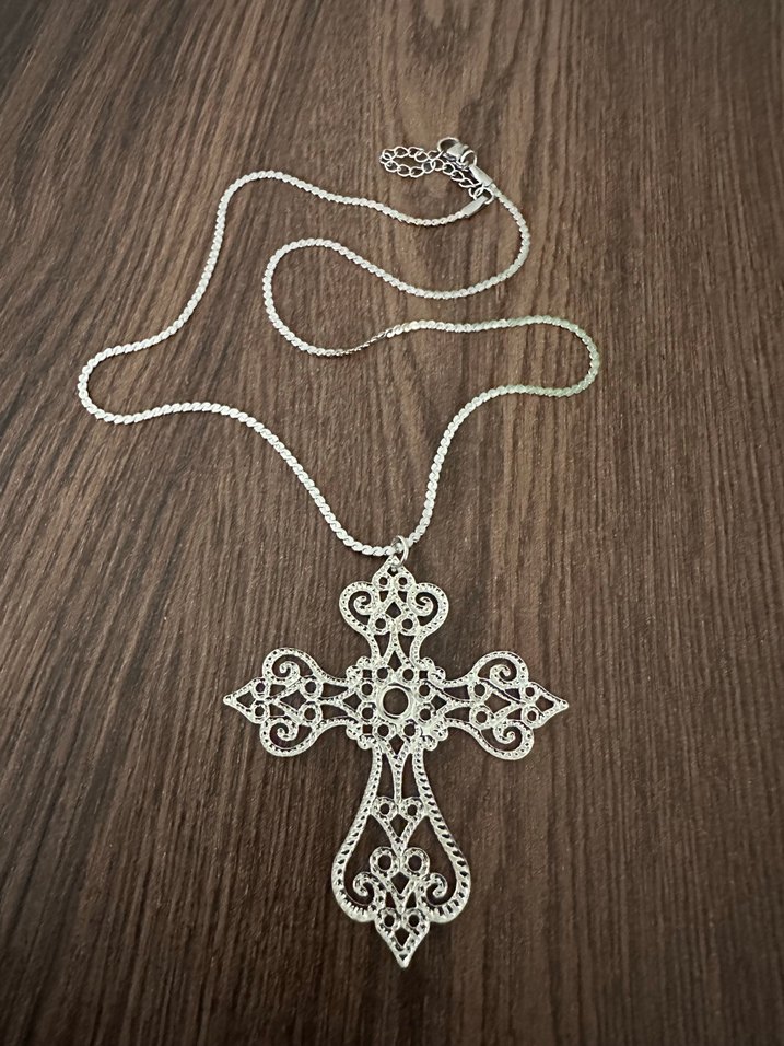 Gothik Nakış İşlemeli Haç Kolye