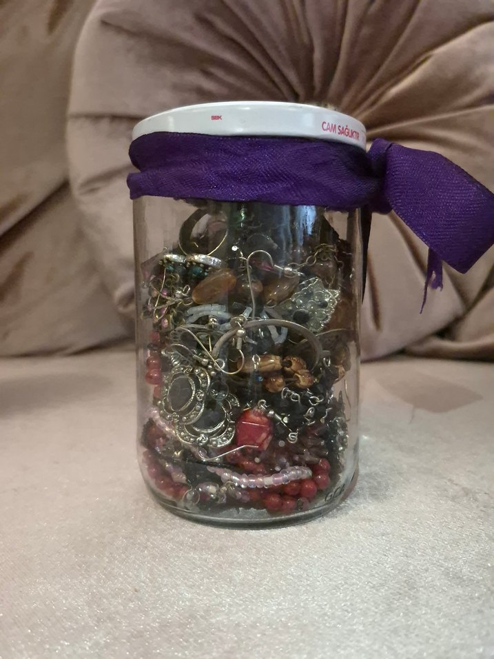Koyu renklerin yoğunlukta olduğu vintage gotik tarz ağırlıklı takı kavanozu