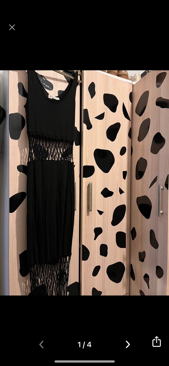 Siyah, halter yakalı, püskül detaylı ve baskılı triko uzun elbise, gotik tarzda ve parti için uygun.