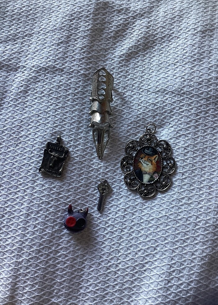 Karışık kolye uçları. Tilkili ve düğme gözlü olan kolye uçları tamamen benim tasarımım ve el yapımıdır. Şövalye yüzüğü satıldı. Tilki kolye ucu satıldı Anahtar 50 tl Düğme gözlü kolye ucu 85 tl Boğa kolye ucu 60 tl Bu ilanı satın almayınız