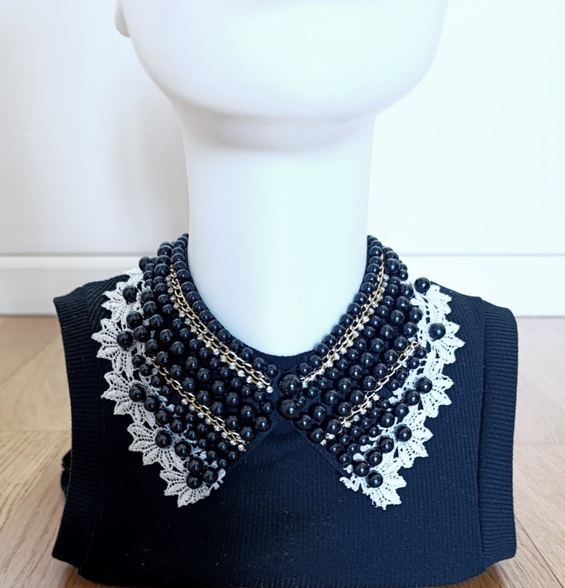 siyah boncuklar ve nakış detaylarıyla gotik tarzda mini kolye seyyar yaka