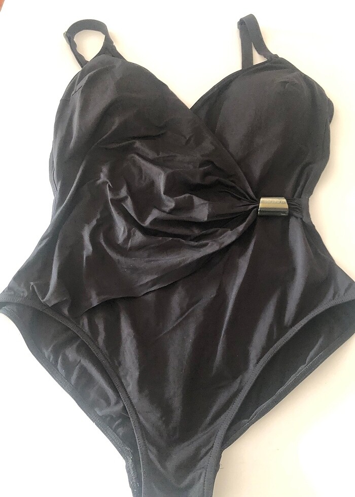 Gottex Silver , siyah önden kruaze ve kemik aksesuarları mayo