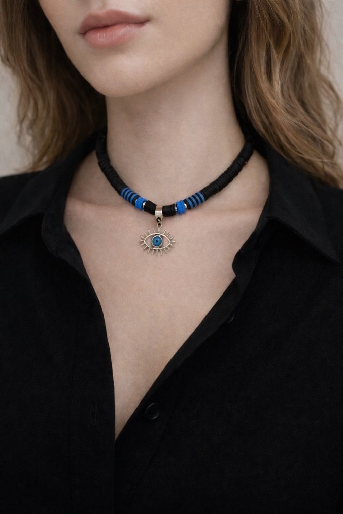Göz detaylı siyah fimo kolye