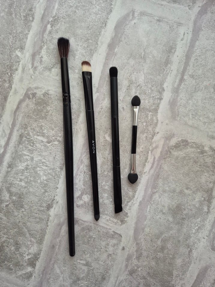 göz makyajı için 4 lü fırça seti çift uçlu fırçalar set olarak fyattır sünger 2 uçlu fırça hiç kullanılmadı diğerleri denendi karışık markalar avon