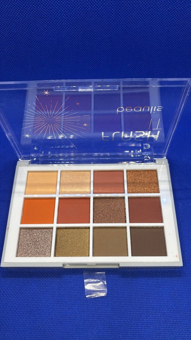 12 farklı açık bej ve sıcak tonlarda, mat ve ışıltılı dokuda göz farı paleti.