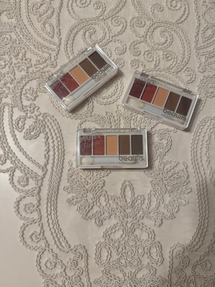 Bej tonlarda koyu ve canlı renkler içeren göz farı paletleri. Her palet küçük bir aplikatörle birlikte gelir. Hiç kullanılmamıştır.