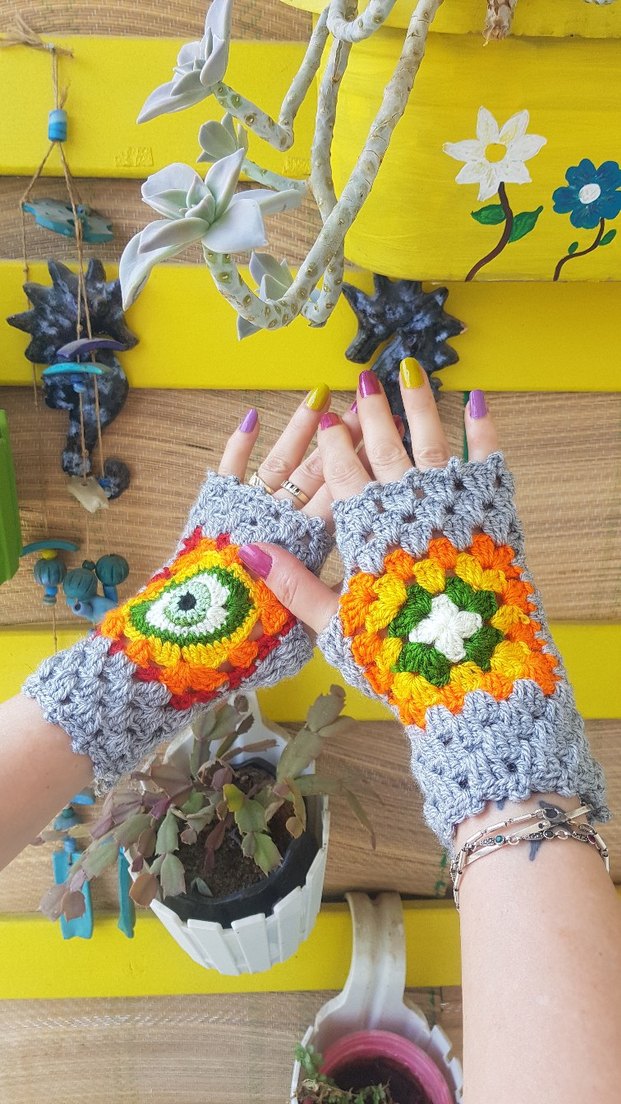 Renkli, örgü parmakları açık kadın eldiveni, bohem tarzda canlı desenlere ve rahat örgü kumaşa sahiptir. Retro ve hippie görünüm için uygundur. Sıfır üründür. Ürün yelpazem ve eldiven çeşitlerim oldukça geniştir. Lütfen mağazamı ziyaret edip ürünlerimi inceleyin. Mağaza ismim Medorya Design dir. Beklerim