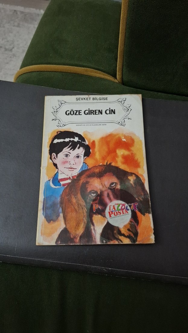 Şevket Bilgise'nin çocuk kitabı 'Göze Giren Cin', çocuk ve köpek illüstrasyonlu kapak ile.