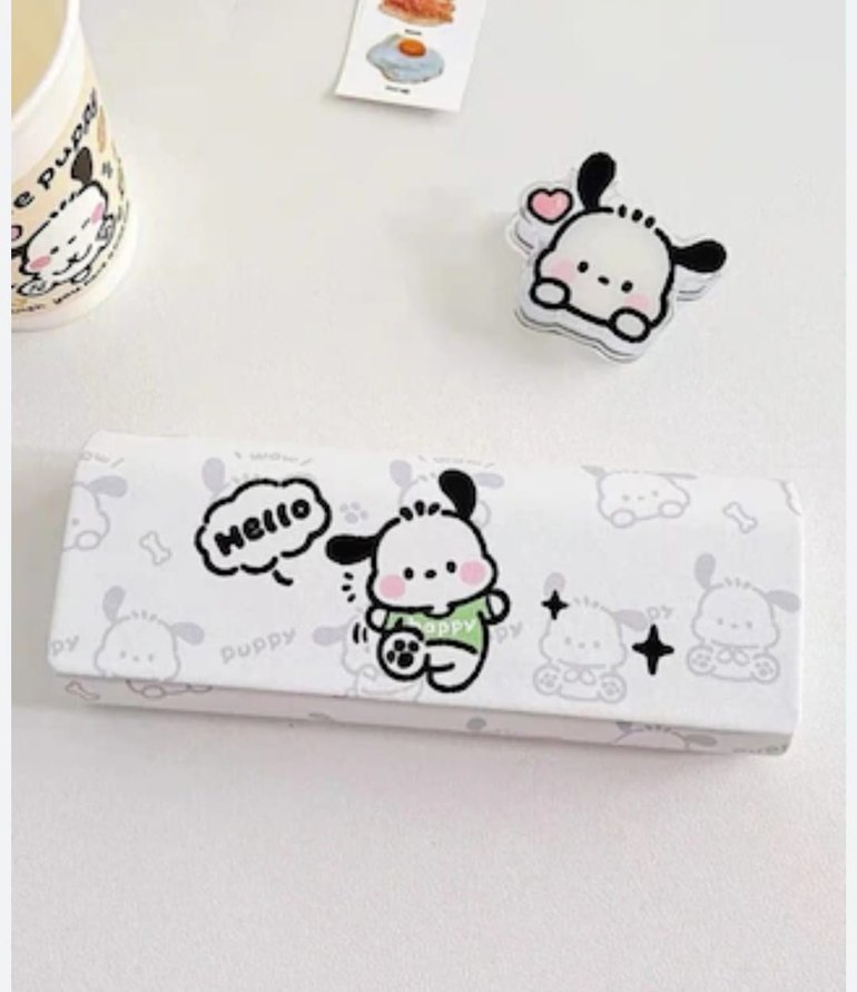 Pastel renklerde baskılı, beyaz kağıttan yapılmış, sevimli köpek yavrusu desenli çocuk aksesuarı.