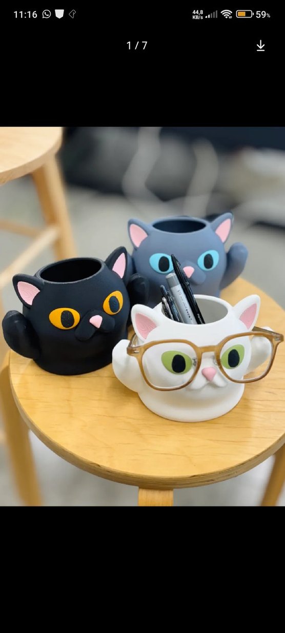 Gri ve siyah tonlarda kedi şekilli organizer, kalem ve gözlük tutmak için kullanışlıdır.