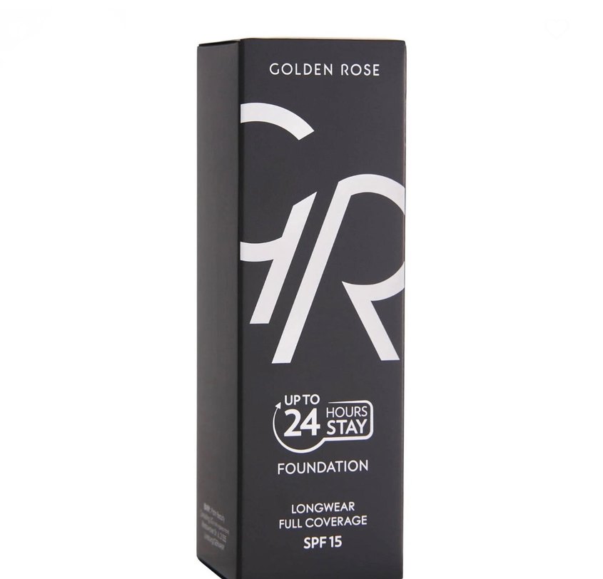 Golden Rose uzun süre kalıcı fondöten, SPF 15 korumasıyla 24 saate kadar tam kapatıcılık sağlar. Koyu tonlarda eşit bir cilt görünümü sunar.