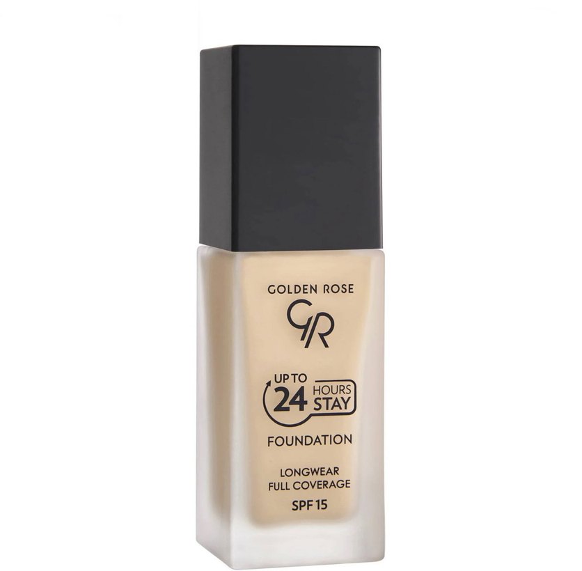 Golden Rose fondöten, SPF15 koruması ve uzun süre kalıcı formülüyle 24 saate kadar tam kapatıcılık sağlar.