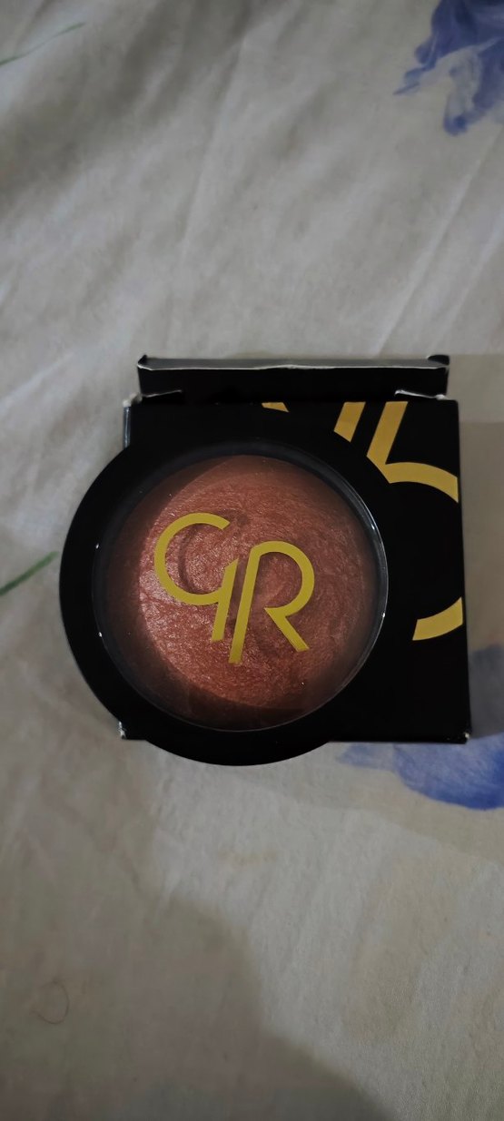 GR markalı koyu kahverengi allık, doğal ve sıcak bir görünüm sağlar. Siyah kapaklı kompakt kutuda sunulmaktadır.