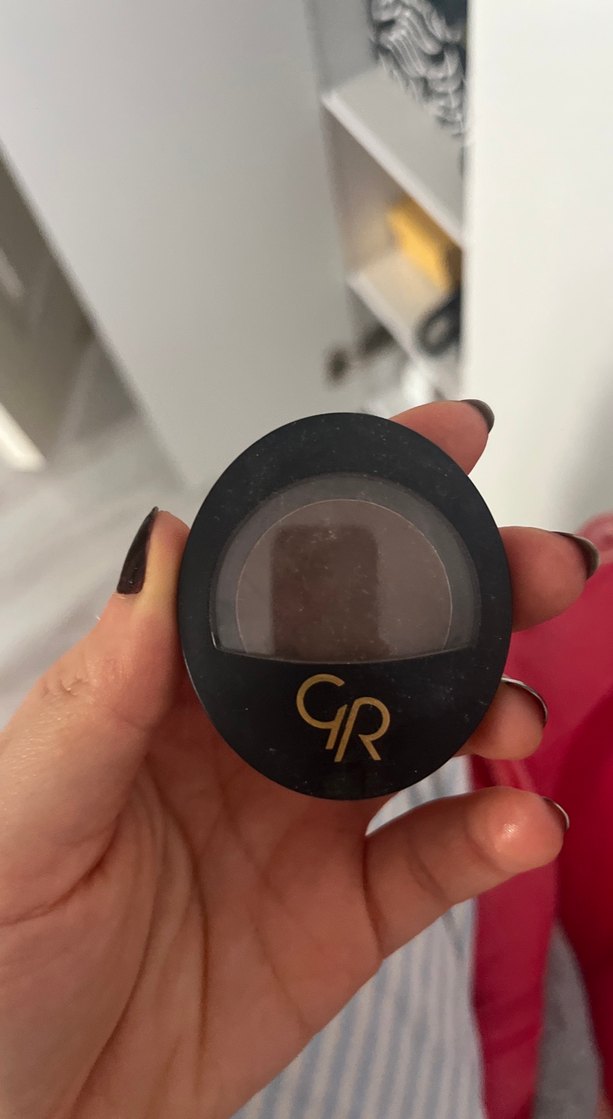 GR markalı koyu kahverengi pudra, kompakt ambalajda makyaj için uygundur.