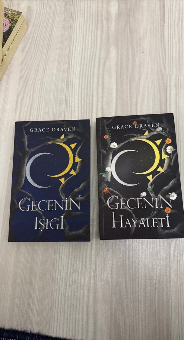 Grace Draven'in "Gecenin Işığı" ve "Gecenin Hayaleti" adlı iki romanından oluşan set, ay simgeli karanlık ve mistik kapak tasarımlarına sahip.