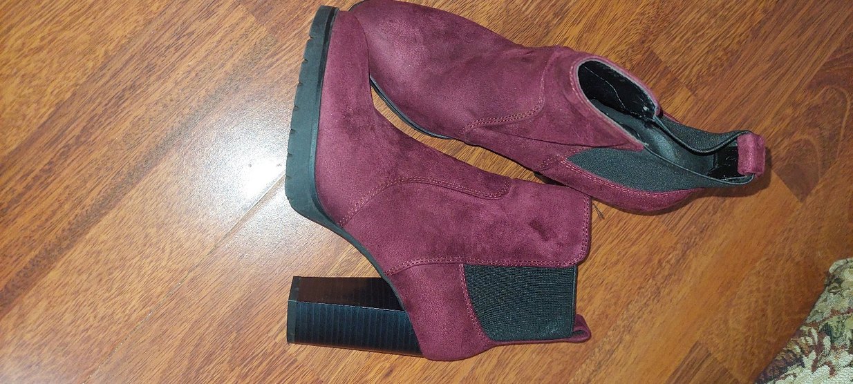 Bordo süet malzemeden, tokalı ve kalın topuklu kadın botları. Rahat ve bohem tarzıyla günlük kullanıma uygundur. Sadece birkaç kez giyildi, resimlerde de belli zaten, hiçbir sorunu yok, sıfırdan farksiz