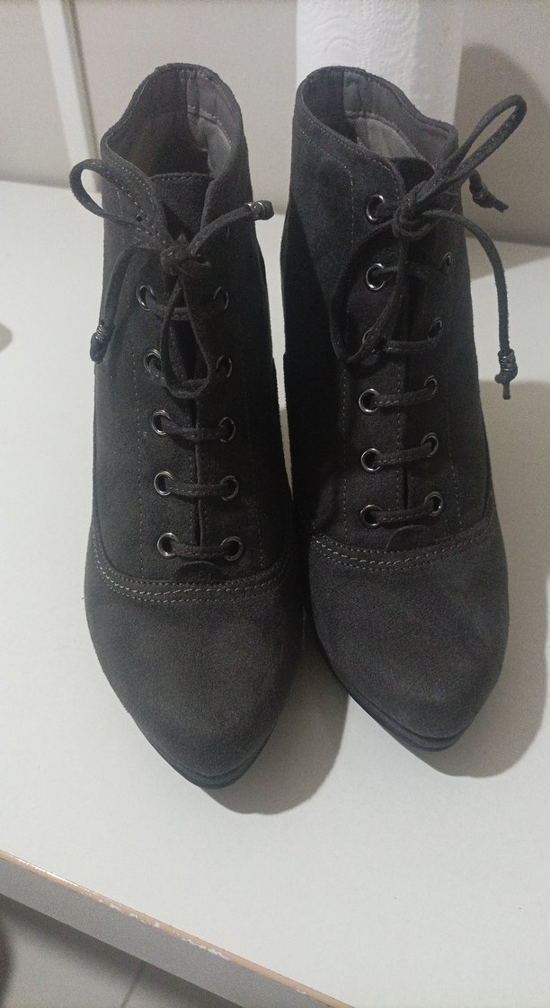 graceland marka Gri Süet Bağcıklı Kadın Dolgu Topuk Bot