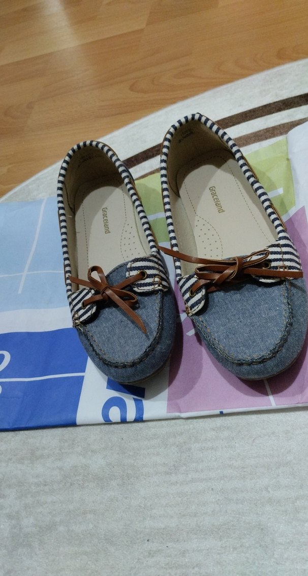 Graceland markalı, mavi ve beyaz desenli,kadın espadril ayakkabı, rahat günlük kullanıma uygundur.