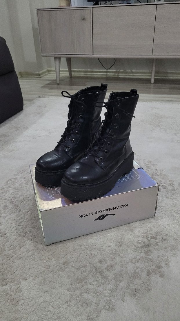 1 kez giydim, bir iki lekesi var görselde belli oluyor. siyah ayakkabi boyasıyla geçer. derisinde vs yırtılma falan yok. temiz, kutusuyla gönderilecek