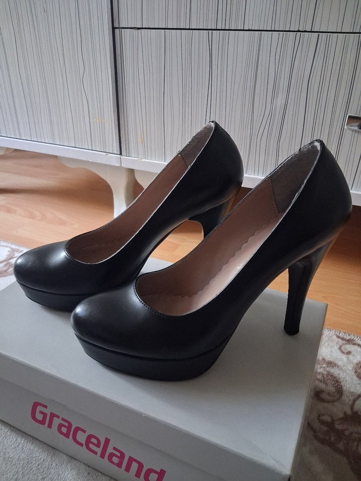 Graceland siyah stiletto topuklu ayakkabılar, modern klasik tasarıma sahip, ofis için uygun, dayanıklı kauçuk malzemeden üretilmiş ve desensizdir. 2 kez giyildi sıfır ayarında şuan büyük geldiği için kullansmıyorum