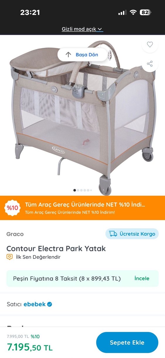 Çok az kullanıldı yeni gibi. Graco Contour Electra park yatak, bej ve gri renklerde, nefes alan file yan panellerle donatılmıştır. Tekerlekleri sayesinde kolay taşınabilir. Ücretsiz kargo ile sunulur . ️