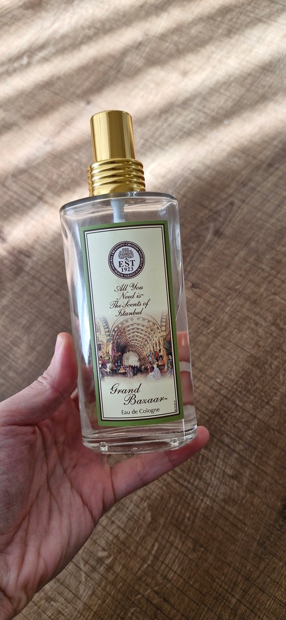 Altın kapaklı, İstanbul Kapalıçarşı görselli Grand Baxar kolonyası, ferahlatıcı bir koku sunar.