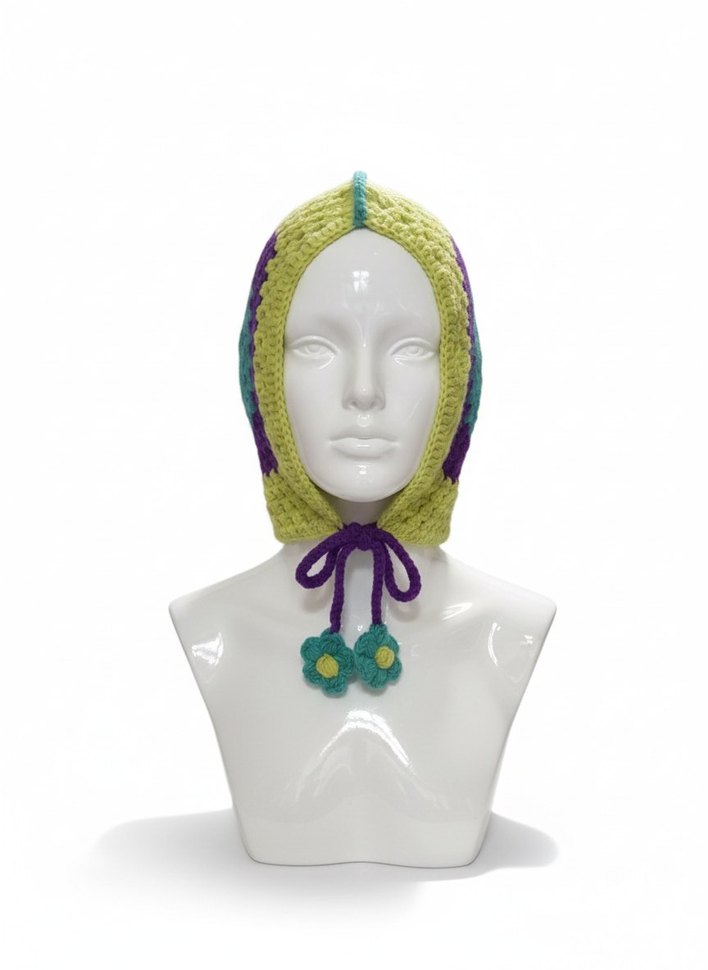 Granny Square Bağlamalı Bonnet Soğuk havalarda konforu ve zarafeti bir araya getiren bu el yapımı balaclava, bağlama kısmındaki çiçek detayıyla sade ama özel bir dokunuş sunar.. Yumuşak dokusu sayesinde başı ve kulakları tamamen sarar, gün boyu rahat bir kullanım sağlar.Farklı renk seçenekleri mevcuttur.