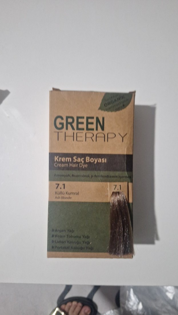 Green Therapy krem saç boyası 7.1 Küllü Kumral, argan yağı, akşam çiçeği yağı, keten tohumu yağı ve havuç tohumu yağı içerir. lutfen satın almadan once yazınız her birinin fiyatı farklıdır.