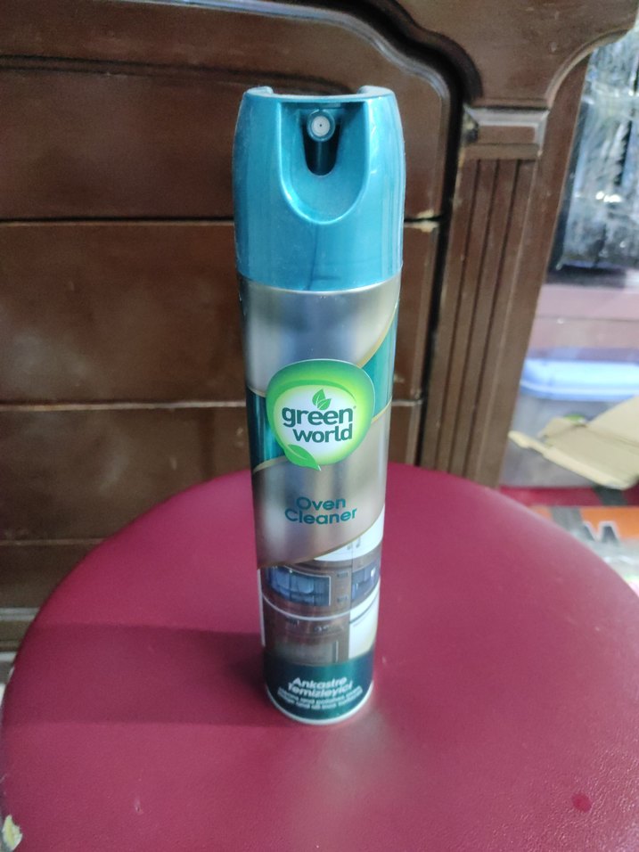 Green World markalı fırın temizleyici sprey, zorlu yağ ve kirleri kolayca çıkarır. Pratik sprey şişede sunulur.