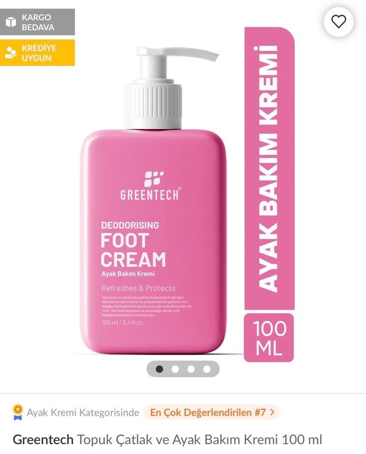 Greentech ayak kremi, deodorant etkisiyle ferahlatır ve korur. Topuk çatlakları ve ayak bakımı için uygundur, 100 ml pompalı şişede sunulur. Sıfır ürün hiç kullanılmamıştır kutusunda gelicektir kendi sitesinde 549₺ lik bir ürün