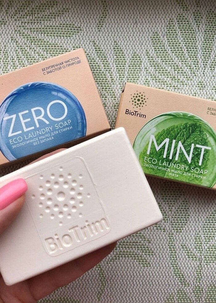 Çevre dostu BioTrim çamaşır sabunu, doğal bitkisel yağlardan elde edilen bileşenler temelinde yapılır. Sabun, dengeli bileşimi sayesinde soğuk suda kullanıldığında bile inatçı kirlerin üstesinden gelir.