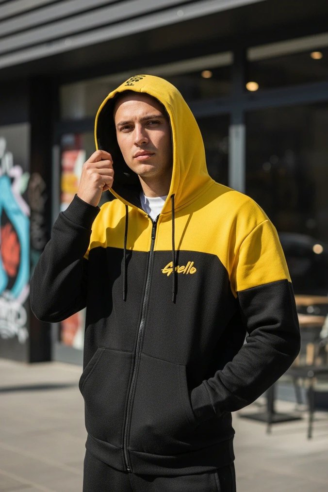 Beden bilgisi için lütfen iletişime geçiniz. Hem spor hem de sokak stiline uygun, çok tarz bir parça! ⚡ Tasarım: Ön ve arka kısmında nakış/baskı detaylı, modern blok renk (sarı-siyah) tasarımı. Detaylar: Fermuarlı modeldir, kapüşonu çift katlı ve kalıplıdır. Cepleri oldukça kullanışlı. Durum: Ürün sıfır ve orjinal olup etiketi üzerindedir. Kalıp: Tam kalıptır, içi yumuşaktır ve sıcak tutar. Fotoğraflarda tüm detayları görebilirsiniz. Dolabın en havalı parçası olmaya aday! Şimdiden iyi günlerde kullanın.