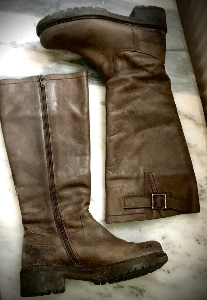 Greyder uzun, 37 numara çizme. Orjinaldir. 69187437 kodu ile. Bazı yerinde çizikler vardır. Boya ile daha iyi olabilir. Günlük kullanıma uygun, kahverengi deri, tokalı ve blok topuklu diz boyu biker çizme. Sokak stiline uygun desensiz tasarım.