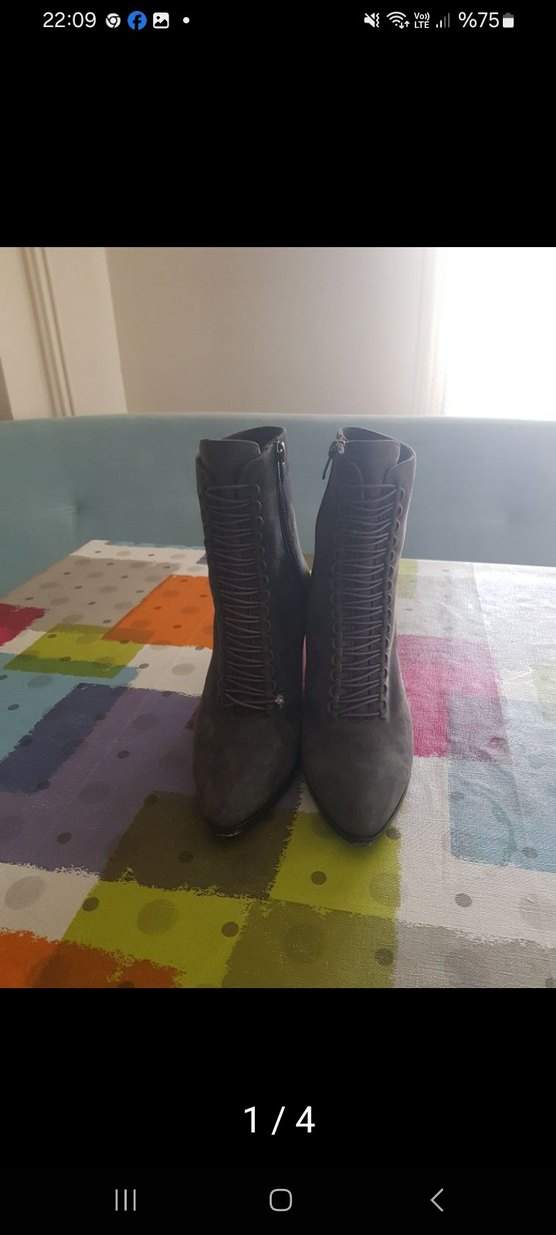 gri renkte çok hoş bir bot sadece iki kez giydim hix bir kusuru yoktur