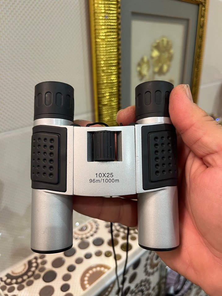 Gri kompakt dürbün, 10x büyütme ve 1000m mesafede 96m görüş alanı sunar. Dokulu tutuş yüzeyi ile güvenli kullanım sağlar. Ürünümüz gayet iyi durumda avuç içi metal