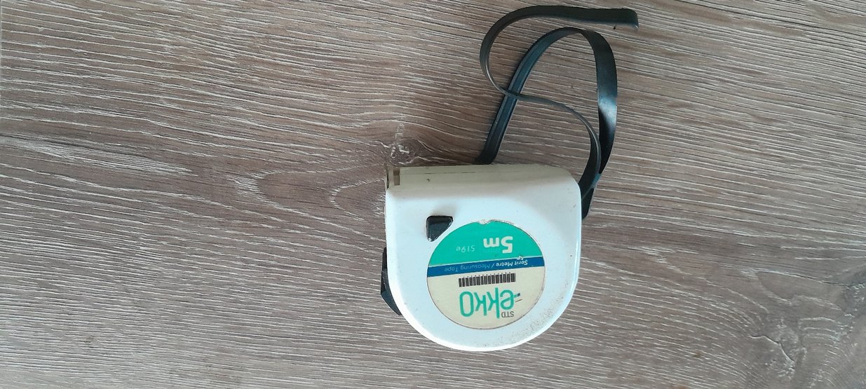 Geri çekilebilir mekanizmalı, siyah askılı gri 5 metre ölçüm bandı. Üzerinde 9615 kodu bulunur.