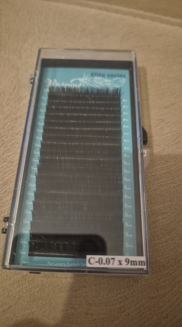 C-kıvırık, 0.07 kalınlık ve 9mm uzunluğunda gri takma kirpikler, doğal görünüm için. Koruyucu kutuda.