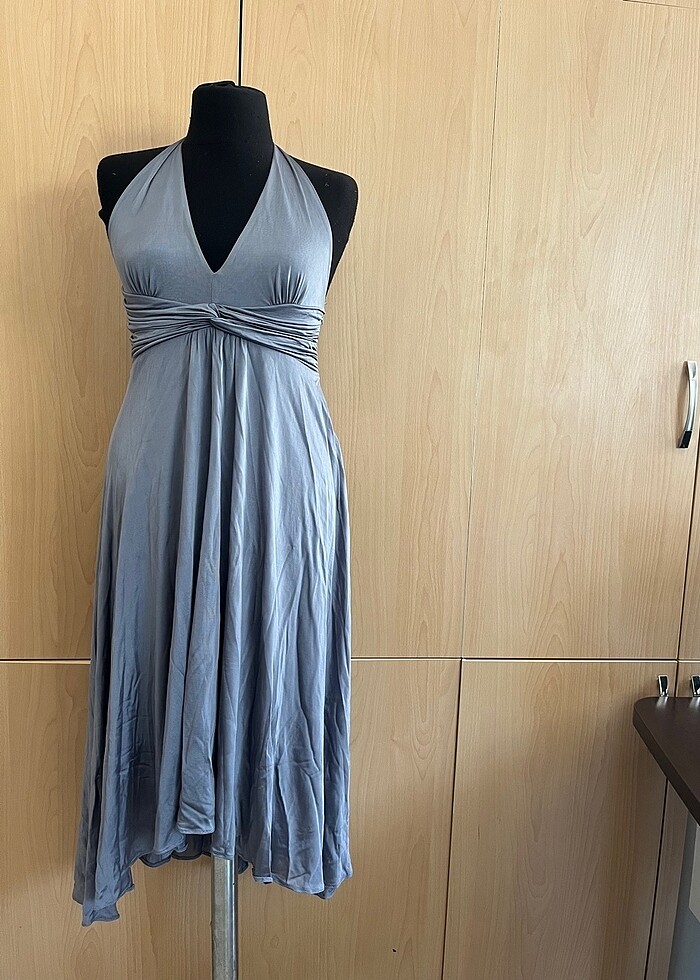 Ön kısa arkası hafif uzun gece elbisesi. Fermuar kısmında küçük deforme var tadilat ile hal olur. (boyun banttan) boyu 122 cm. Göğüs 34 tam tur 68 cm.
