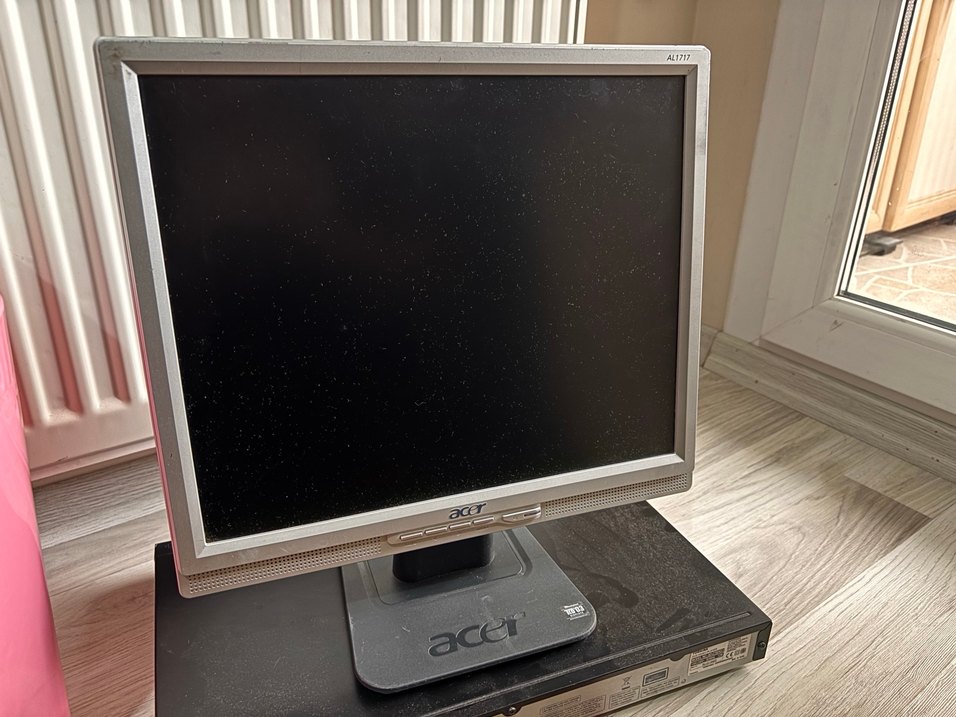 Gri Acer AL1717A monitör, net görüntü ve sağlam taban sunar. Güvenilir performans için tasarlanmıştır. Acer logosu çerçeve ve tabanda yer alır. ️