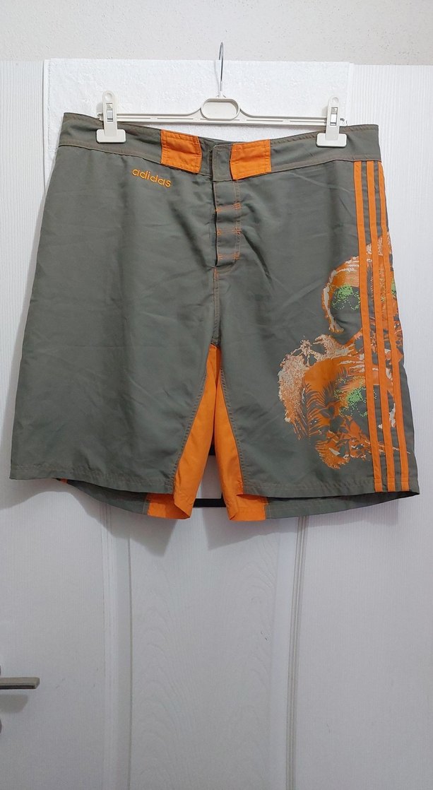 Gri renkli Adidas erkek şort, baskılı desen ve kemerli bel detayına sahiptir. Gevşek kesim ve midi boyda, spor ve sokak modası tarzını birleştirir.