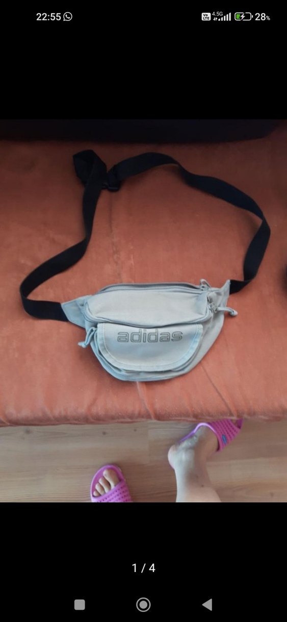 Gri renkli Adidas çanta, ayarlanabilir orijinal ürün, içi biraz dökülüyor, yazısını son fotoğrafta ekledim