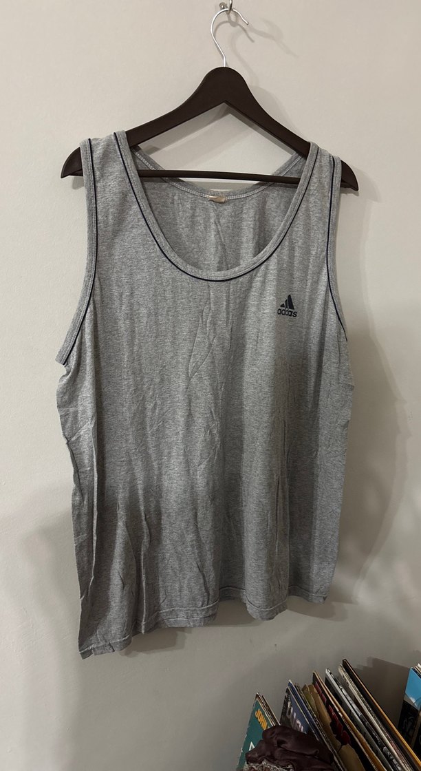 Gri renk, oversize kesim Adidas erkek atlet. Düz tasarımlı ve normal boyda, rahat kullanım sağlar. ️♂️
